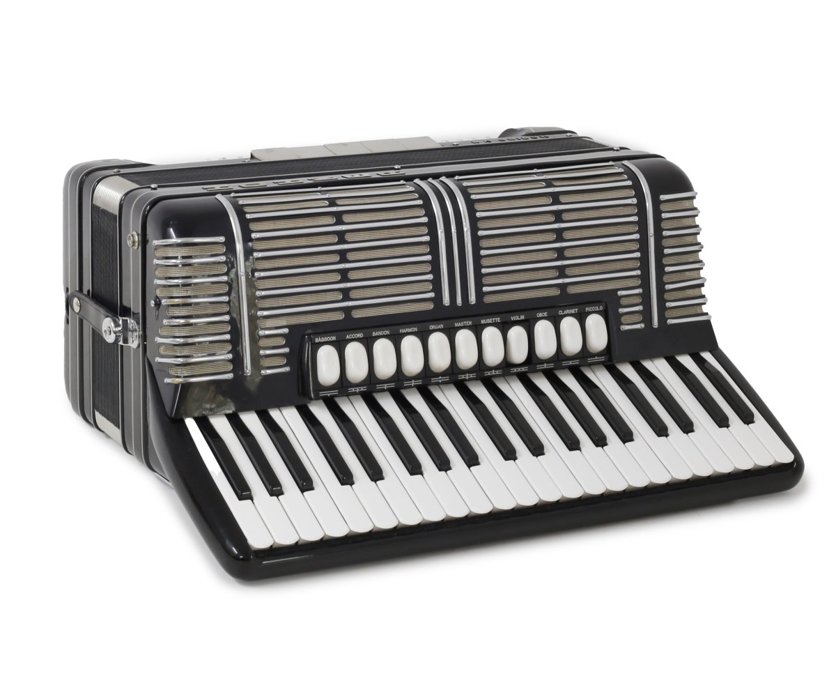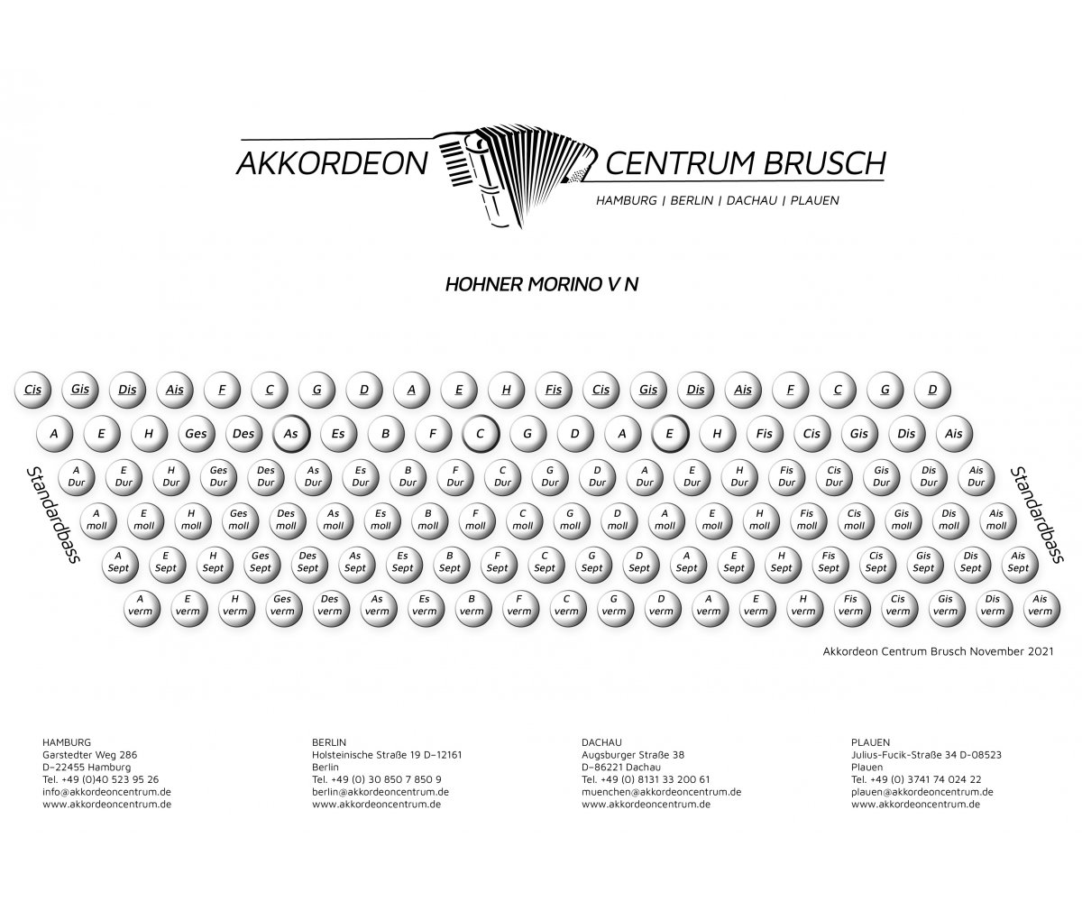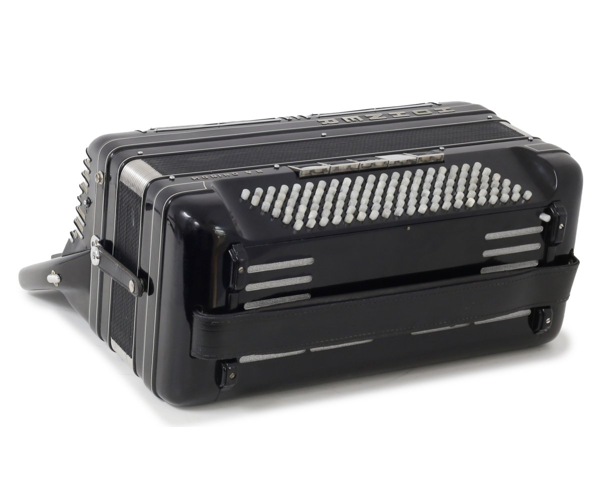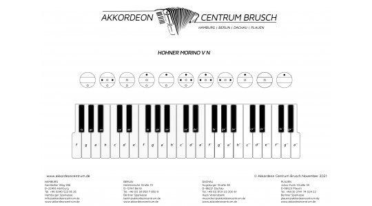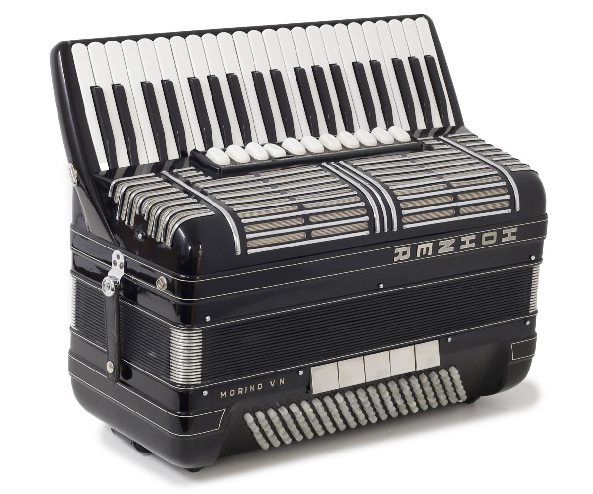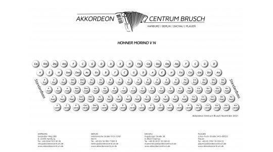 Sehr schön gepflegte HOHNER Morino V N. Die Tastatur hat neue Klappen und ist neu geführt. Die Stimmtechnik ist generalüberholt und es wurde ein Echt-Leder-Handriemen verbaut.